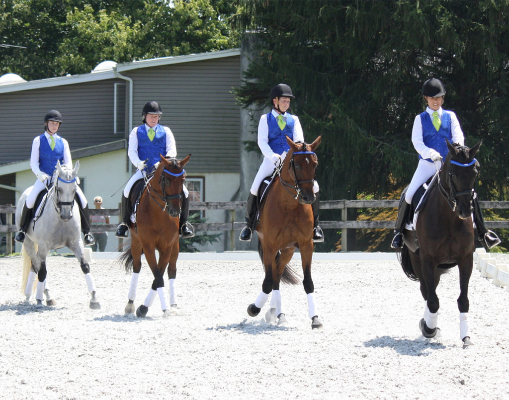 The Junior Team Peanuts won the Quadrille Challenge held at Dressage at Blue Goose III, August 9, 2017, and also performed at Dressage 4 Kids and Plantation Field’s BEST.EVENT.EVER. They were selected to be the Color Guard at Dressage at Devon with Flag Bearers Lucy Donaldson on Just By Chance and Evelyn Juvonen on Final Decision.